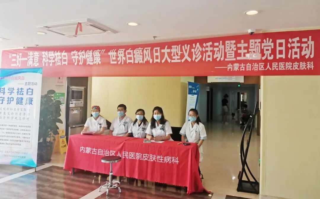 积极响应皮肤病学教育部重点实验室白癜风精准医学研究联盟的号召,旨在皮肤科知名专家联动,开展义诊科普活动,倡导科学规范诊疗,充分践行“三好一满意”系列主题党日活动,在“世界白癜风日”到来之际,我院皮肤性病科开展了以“三好一满意,科学祛白,守护健康”为主题的义诊活动暨主题党日活动,关爱白癜风患者,树立科学和理性诊治理念,帮助他们走出疾病阴霾,同时提升了公众对白癜风的重视与认知。 6月30日上午9:00至11:00义诊活动在我院门诊8楼大厅正式开始,由我院皮肤性病科李睿亚主任、段妍主任等专家以及郝淑华护士长、李晓东主管护师等组成的专业医护团队,面对面为患者进行义诊咨询,细致分析患者病情、科学指导治疗方案、耐心为其答疑解惑。皮肤性病科始终积极开展公益义诊活动,为群众办实事解难题,为推动皮肤病临床防治工作贡献力量。