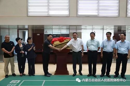 为了践行《健康中国2030规划纲要》、“让广大民众公平可及的享有全方位健康管理服务”,我院健康管理中心率先将高品质的健康管理服务送进长期合作的机关、企业、警营、大学院校等。2018年8月30日上午,我院“建行内蒙古分行机关健康管理服务站”正式揭牌启动。内蒙古自治区人民医院副院长蔡超、健康管理中心(体检中心)主任王秀艳、副主任娜日苏,建行内蒙古分行机关邵斌行长、丁建新副行长、党群工作部赵学锋主任、任中生副主任、李占清副主任参加了揭牌仪式。蔡超副院长与邵斌行长为"服务站"揭牌。揭牌仪式后蔡超副院长、外科周凌云主任医师、内分泌科张志琴主任医师、心内科卢薇主任医师、健康管理中心娜日苏主任医师等为建行内蒙古分行机关领导和职工进行多学科大型健康义诊活动,让广大职工在自己的办公室就能享受到内蒙古自治区人民医院顶级专家的健康管理服务!
