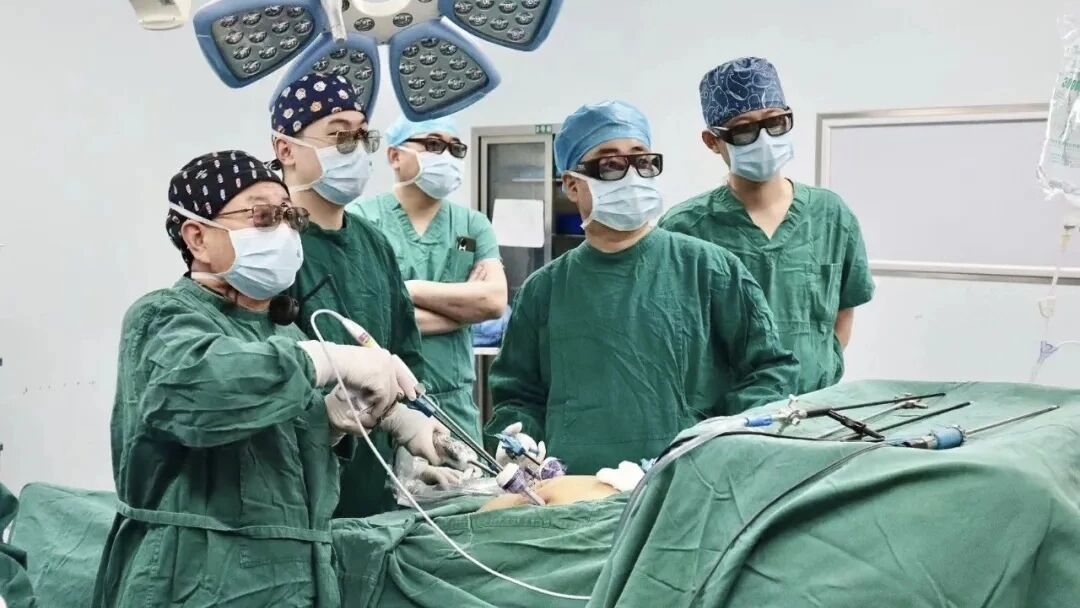 患者女性,45岁,因腹围逐渐增大并触摸到肿物找到王举主任,王主任为其确诊为胃巨大间质瘤,此肿瘤非常巨大,从上腹部一直延续到盆腔。王主任为其制定了“先口服伊马替尼再手术”的治疗策略。患者口服伊马替尼治疗4个月后肿瘤体积缩小了50%。8月7日,王举教授带领团队克服肿瘤巨大、侵犯周围脏器等复杂因素,为其做了腹腔镜辅助胃肿瘤切除加胰体尾联合切除,成功保留了脾脏。患者术后恢复良好,随访至今肿瘤未复发。2025年,胃肠外科采用“精准转化+手术”的理念,成功为20余名复杂腹腔间质瘤患者实施了手术,包括近端胃+脾脏+胰体尾联合切除、复发间质瘤和急诊大出血患者的手术,彰显了胃肠外科在治疗腹腔间质瘤方面的卓越实力与先进理念。