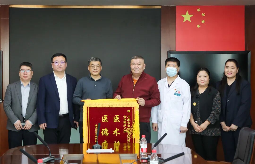 近日,蒙古国库苏古尔省省长勒·特木尔巴特尔在内蒙古自治区人民医院接受治疗后康复良好。为表达感谢之情,勒·特木尔巴特尔省长于2月4日下午专程来访,向医院赠送锦旗,并与医院党委书记周涛、副院长徐永胜、纪委书记张胡日查举行交流会谈。